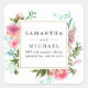 Use this chic and sophisticated square return address label as an envelope seal. Easy template for the DIY Bride. Your names are showcased in a simple and classic serif font. Your address follows in italic text. Your info is surrounded by an elegant gold frame. Pink peonies and their leaves decorate the frame.