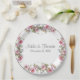 Pink Floral Wedding Script Name Elegant Pretty Paper Plate