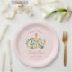 Pink Floral with Gold Cross Baptism Paper Plate