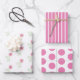 Pink Floral Wrapping Paper Flat Sheet Set of 3