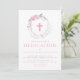 Pink Floral Wreath & Cross Baby Dedication Invitation