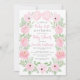 Pink floral wreath cute bow boho baby girl shower invitation