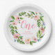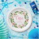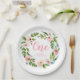 Pink Floral Wreath Monogram Birthday Party Plates