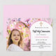 Pink florals photo arch girl First Holy Communion Invitation
