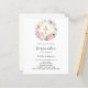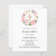 An elegant white background, decorated with watercolored pink and white flowers in a wreath and a golden cross. Personalize and add a name and details.