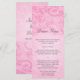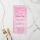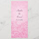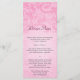 Floral scrollwork makes a unique look for this lovely pink wedding menu card. The image is repeated on the bottom as a watermark to offset the customized wedding menu text. The entire image is repeated on the reverse in an opposite manner and text can be added or removed above it. An elegant and classic look for a special day. Available in alternate colours with matching products.