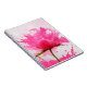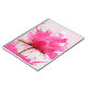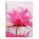Pretty flower with pink petals exploding into pink paint splatters on a large white wall behind. Large drops of paint are sprayed and splashed all over. Cool modern abstract contemporary design.