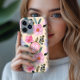 Pink flower boho monogram iPhone case