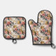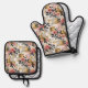 Pink Flower Bouquets with Gold and White Squares Oven Mitt & Pot Holder Set