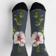 Pink Flower Mallow green leaves on dark grey Socks