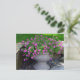 Pink petunias spill over the sides of a decorative planter. With matching postage.