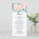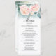 Blush pink flowers and greenery branches watercolor wedding menu cards