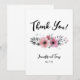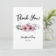 Pretty personalized wedding thank you note with pink flowers.