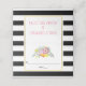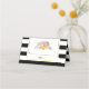 Chic black and white stripes paired with beautiful folklore flowers in pink and yellow are the focus of this modern floral wedding escort card for your spring or summer wedding.