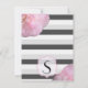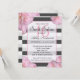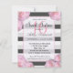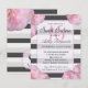 Pink Flowers & Black, Grey, & White Stripes Invitation