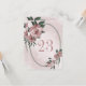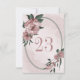 Unique table number card featuring romantic pink flowers and green leaves on an oval geometric frame.