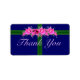 Pretty pink geraniums with lavender and white flowers on royal blue background with green satin ribbon give a delightful touch to thank you stickers. You may also enjoy matching cards, envelopes, stamps and labels available in my store. Original photography, art and design by Anura Design Studio 2010.