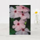 My original artwork is featured on this floral note card, consisting of my original photograph of pink Periwinkle flowers in a garden, also called Impatiens, styled with an illustrated painterly technique for an artsy appearance.