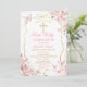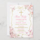 Elegant Blush Pink Gold Frame Cross Christening Primera Comunión Invitación