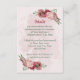Beautiful romantic wedding reception details enclosure card featuring pink and dusty rose flowers and some green leaves .
