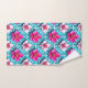 Pink Flowers on a Geometric Blue Background Bath Towel Set