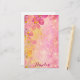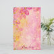 Romantic floral personalized stationery paper design featuring stylized pink flowers, bokeh lights, sparkles and yellow paint splatters. The text is fully customizable.