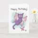 Pink Flying Kitten Happy Birthday Card