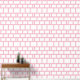 This pattern of pink-bordered squares and rectangles of varying but consistent sizes creates a striking repeating horizontal design. The pink borders are very thick, so this is a very bold pattern in a smaller space, or creates a more subtle brick-like design in a larger room. It is both retro and modern, reminiscent of 1950s bathrooms, art deco, and outdoor faux-brick patterns. Design description: Horizontal stripes of pink-bordered rectangles with white interiors. The rectangles range in size, but most are wider than they are tall, some are nearly square. Across a row, the rectangles are a consistent height, so that your eye moves across them smoothly. Within a row, the rectangles have different widths. Every fourth row, there is a taller group of rectangles. The pattern repeats so that our eyes and brains are comfortable with it, but there are enough different sized rows and rectangles to create visual interest.