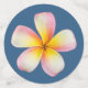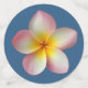 Pink Frangipani Plumeria Flowers & Heart on Blue Confetti