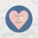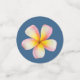 Pink Frangipani Plumeria Flowers and heart on award blue Wedding Table Confetti. Text can be personalized for wedding, anniversary,and Birthdays. Frangipani flowers stand for beauty and perfect love.