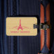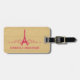 Elegant and chic French Flourish Luggage Tag featuring a faux woodgrain look background and an Eiffel Tower design in magenta adorned with cascades of stylish swirls. This girly and trendy design is easy to customize with the personalized text of your choosing. Click "Customize It" to find more personalization options.