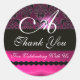 PINK FUCHSIA PURPLE DAMASK MONOGRAM, violet Classic Round Sticker