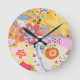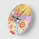 Pink fun colourful floral round clock