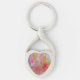 Pink Blooms in an abstract brushstroke style creates the illusion of a windswept garden. Feminine flair heart shaped keychain.