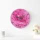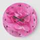 The pink garden beauty on this Large Clock is an original photograph by MaeFlowers of a beautiful pink garden rose. It's a closeup view, showing the flower open wide, with all of its petals in ruffled layers. The intense pink colour becomes deeper in the centre of this lush bloom. In the corners of the photo, bits of the flower's surrounding green leaves can be seen. This is a design for lovers of the colour pink.