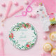 Pink Garden Watercolor Rose Bouquet Paper Plate
