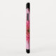 Pretty iPhone XR case done in black, with graphics of a big pink Gerber daisy bloom peeking over, from the left side of the case. Personalize the pink text, as a great gift idea for her.