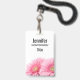 A name tag with a photograph of a pair of pink gerbera daisies. Elegant & stylish.