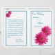 Le texte sur ce programme de mariage de marguerite rose gerbera est entièrement personnalisable. Il est destiné à être plié vers le milieu. Pour modifier le texte, utilisez l'option personnaliser. Pour les modifications plus étendues du texte, telles que les modifications de la police, de la couleur de police, de la taille de police, de la couleur arrière - plan ou de la disposition du texte, utilisez l'option personnaliser. De plus, une fois votre texte finalisé, si vous devez le déplacer un peu, vous pouvez le faire en utilisant l'option personnaliser. Ce programme d'occasion spéciale pour la marguerite rose est actuellement customisé comme un programme de mariage, mais il fonctionnerait bien comme un programme pour une célébration d'anniversaire (doux 16), wedding shower, ou peut-être une célébration de fin d'études secondaires aussi. Vraiment, cela ferait même un très beau bulletin d'église avec des changements au texte. Laissez votre imagination vous mener. Il est recommandé que ce soit acheté seulement comme une finition mate standard de 80lb. L'option papier 100lb est difficile à plier et n'est donc pas recommandée.