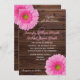 Pink gerbera daisy floral rustic wood wedding invitation
