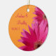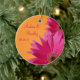 A pretty pink gerbera daisy wedding or anniversary keepsake ornament or wedding favour ornament with bright orange background. Pretty and colourful design. To change the text use the personalize options. For more extensive changes to the ornament, including changing the font, font size, font colour, or text placement, use the customize it option.