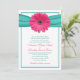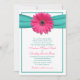 Pink Gerbera Daisy Turquoise Wedding Invitation