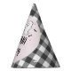 Cute girls Halloween themed birthday hat featuring a cute ghost, pink pumpkin ans some bats on a light pink background. This girls Halloween birthday hat also features a gray and black plaid pattern.