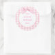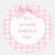 Round sticker has an image of baby pink gingham and a white circle with a pink border, an adorable pink bow and customizable text; a perfect special touch for your baby shower invitations. See matching favour tag, label and square sticker. See the entire Kids’ Corner Sticker collection in the INVITES | Stickers & Labels section.