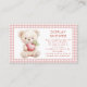 Pink Gingham Apple of Eye Bear Display Baby Shower Enclosure Card