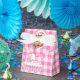 Beautiful & Elegant Vintage Style Tent Favour Boxes for Baby Shower Favours Featuring Vintage Pink Baby & Ruffled Bassinet Purple Gingham Design