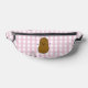 Adorable fanny pack featuring a cute happy cartoon brown potato. The background is a cute classic pattern of pink and white gingham.