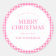 Create your own custom Christmas stickers featuring minimalist typography on a cute pink gingham plaid pattern background.