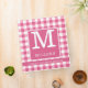 Monogrammed cookbook recipe binder with a rustic gingham check pattern in pink and white. Personalize with monogram initial letter and family name on the cover.' Family bonding over food 'typography quote on the back.