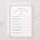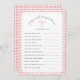 Editable game title and text questions for baby shower or bridal shower. Features a hand painted bow with gingham plaid light pink frame and backer.